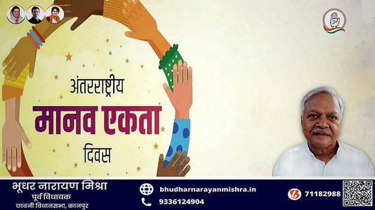भूधर नारायण मिश्रा-अंतरराष्ट्रीय मानव एकता दिवस की  सभी देशवासियों को हार्दिक शुभकामनाएं
