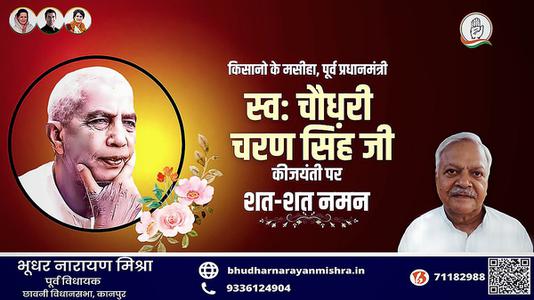 चौधरी चरण सिंह का ऐसा मानना था की देश की समृद्धि का रास्ता गांवों के खेतों से होकर गुजरता हैं, उनका कहना था कि भ्रष्टाचार की कोई सीमा नहीं है। चाहे कोई भी लीडर आ जाए, जिस देश के लोग भ्रष्ट होंगे वह देश कभी तरक्की नहीं कर सकता। बात जब मेहनती किसानों के अधिकारों की रक्षा की आती थी तो उनका निश्चय दृढ़ था। चौधरी चरण सिंह जी ने वंचितों को सशक्त बनाने के लिए कठिन परिश्रम किया। आज चौधरी चरण सिंह की जयंती का दिन हैं, जिनकी स्मृति में राष्ट्रीय किसान दिवस मनाया जाता है। आज की ग्रामीण बदहाली, उपेक्षा, किसानों की आत्महत्याएं, गांवों से शहर की ओर बढ़ता पलायन, गांव-शहर के बीच बढ़ती आर्थिक-सामाजिक विषमताएं आदि विषय उनकी राजनीतिक विचारों की प्रासंगिकता को जीवित बनाए हुए हैं। स्वतंत्रता सेनानी से लेकर देश के प्रधानमंत्री तक बने चौधरी चरण सिहं ने ही भ्रष्टाचार के खिलाफ सबसे पहले आवाज उठायी थी, कि भ्रष्टाचार का अंत ही देश को आगे ले जा सकता है। उन्होंने स्वाधीनता आंदोलन के समय राजनीति में प्रवेश किया था। सन् 1929 में कांग्रेस के लाहौर अधिवेशन के 'पूर्ण स्वराज्य' उद्घोष से प्रभावित होकर युवा चरण सिंह ने गाजियाबाद में कांग्रेस कमेटी को बनाया था।