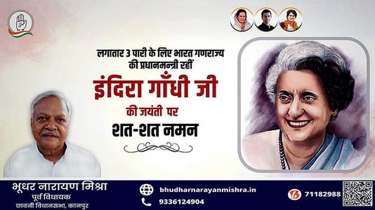 भूधर नारायण मिश्रा-इंदिरा गाँधी जी की जयंती पर शत् शत् नमन