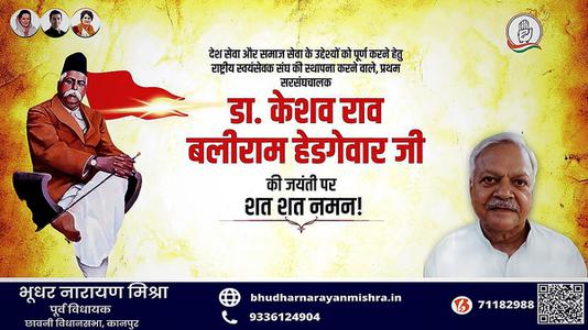 नमस्कार, मैं भूधर नारायण मिश्रा, कानपुर महानगर से पूर्व विधायक बोल रहा हूँ. मैं आप की आम समस्याओं के समाधान के लिए आपके साथ मिल कर कार्य करने को तत्पर हूँ, चाहे वो हो क्षेत्र में सड़क, शिक्षा, स्वास्थ्य, समानता, प्रशासन इत्यादि से जुड़े मुद्दे या कोई सुझाव जिसे आप साझा करना चाहें. आप मेरे जन सुनवाई पोर्टल पर जा कर ऑनलाइन भेज सकते हैं. अपनी समस्या या सुझाव दर्ज़ करने के लिए क्लिक करें - जन सुनवाई.