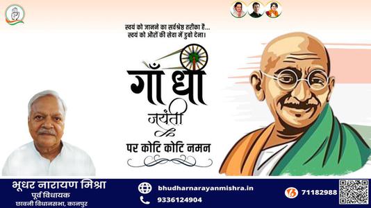 भूधर नारायण मिश्रा-सत्य, अहिंसा और वैश्विक शांति के प्रणेता राष्ट्रपिता महात्मा गांधी की जयंती पर कोटि-कोटि नमन