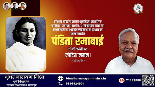 भूधर नारायण मिश्रा-पंडिता रामाबाई   की जयंती पर शत शत नमन