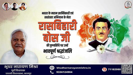भूधर नारायण मिश्रा-रासबिहारी बोस जी की पुण्यतिथि पर उन्हें विनम्र श्रद्धांजलि
