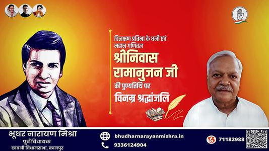 नमस्कार, मैं भूधर नारायण मिश्रा, कानपुर महानगर से पूर्व विधायक बोल रहा हूँ. मैं आप की आम समस्याओं के समाधान के लिए आपके साथ मिल कर कार्य करने को तत्पर हूँ, चाहे वो हो क्षेत्र में सड़क, शिक्षा, स्वास्थ्य, समानता, प्रशासन इत्यादि से जुड़े मुद्दे या कोई सुझाव जिसे आप साझा करना चाहें. आप मेरे जन सुनवाई पोर्टल पर जा कर ऑनलाइन भेज सकते हैं. अपनी समस्या या सुझाव दर्ज़ करने के लिए क्लिक करें - जन सुनवाई.