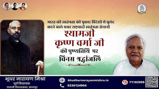 भूधर नारायण मिश्रा-श्यामजी कृष्ण वर्मा जी की पुण्यतिथि पर विनम्र श्रद्धांजलि