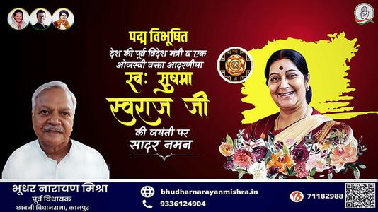 भूधर नारायण मिश्रा-सुषमा स्वराज जी की जयंती पर शत शत नमन