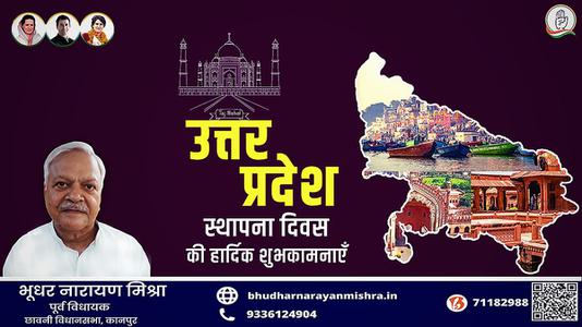 भूधर नारायण मिश्रा-उत्तर प्रदेश के स्थापना दिवस पर सभी को   हार्दिक बधाई एवं शुभकामनाएं