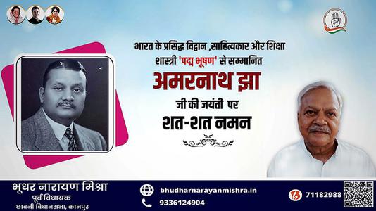 भूधर नारायण मिश्रा-साहित्य एवं शिक्षा क्षेत्र में पद्म भूषण से सम्मानित   अमरनाथ झा जी की जयंती पर कोटि-कोटि नमन