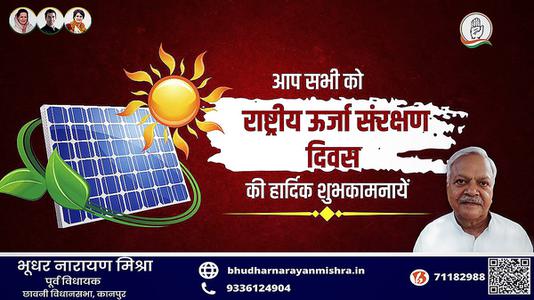 भूधर नारायण मिश्रा-राष्ट्रिय ऊर्जा संरक्षण दिवस   पर सभी देशवाशियो को बधाई